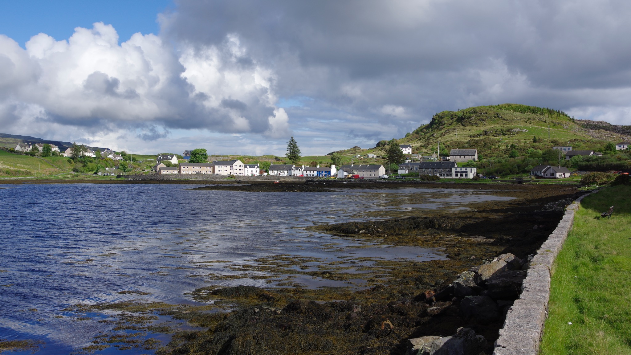 La nuit suivante a été pluvieuse, le matin est gris mais tout s’évapore au bout de quelques kilomètres, nous arrivons à Tobermory sous un joli jeu de ciel, entre soleil et nuages et savourons la pause sous les couleurs du port.