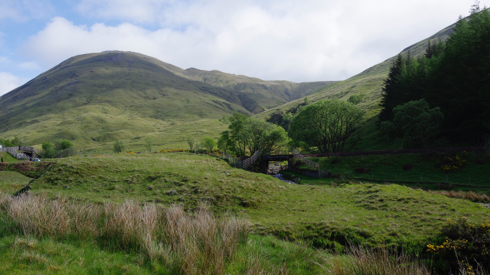 La route de Glencoe est superbe, même si elle est fréquentée nous ne pouvons que conseiller de la parcourir. A force de rater les bons coups à cause de cette p- – -n de pluie nous nous promettons de revenir. Le premier camping vers la station de ski n’a plus d’abri de dispo en dur, nous n’avons clairement plus envie de monter la tente sous les averses et cherchons plus loin. Tant mieux, Tyndrum nous accueille, nuit au sec et l’auberge est très agréable, bonnes bières et repas savoureux. Belle balade le lendemain sur le sentier qui suit un bout de la voie ferrée, dommage que cette piste n’accueille pas les deux roues !