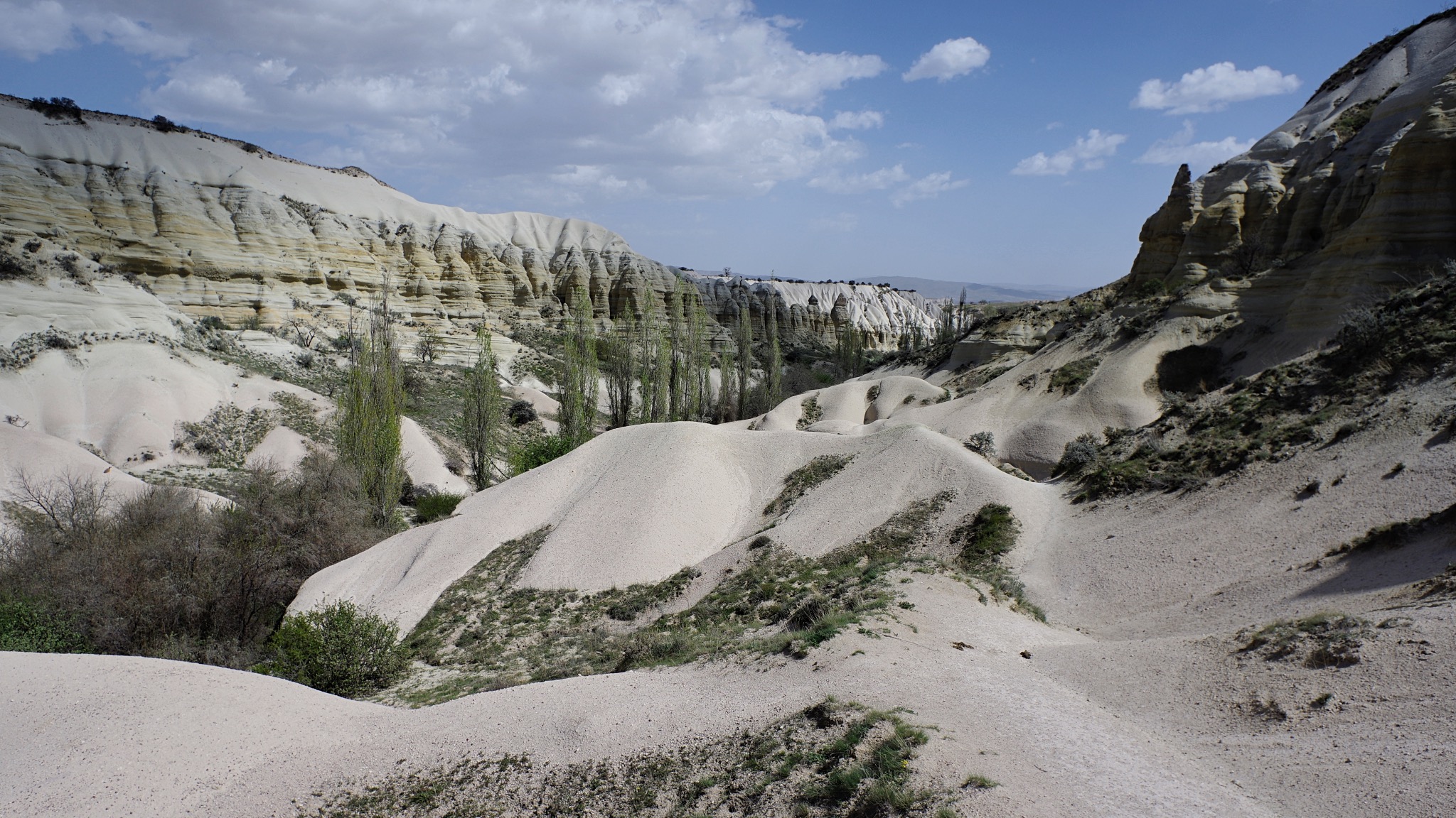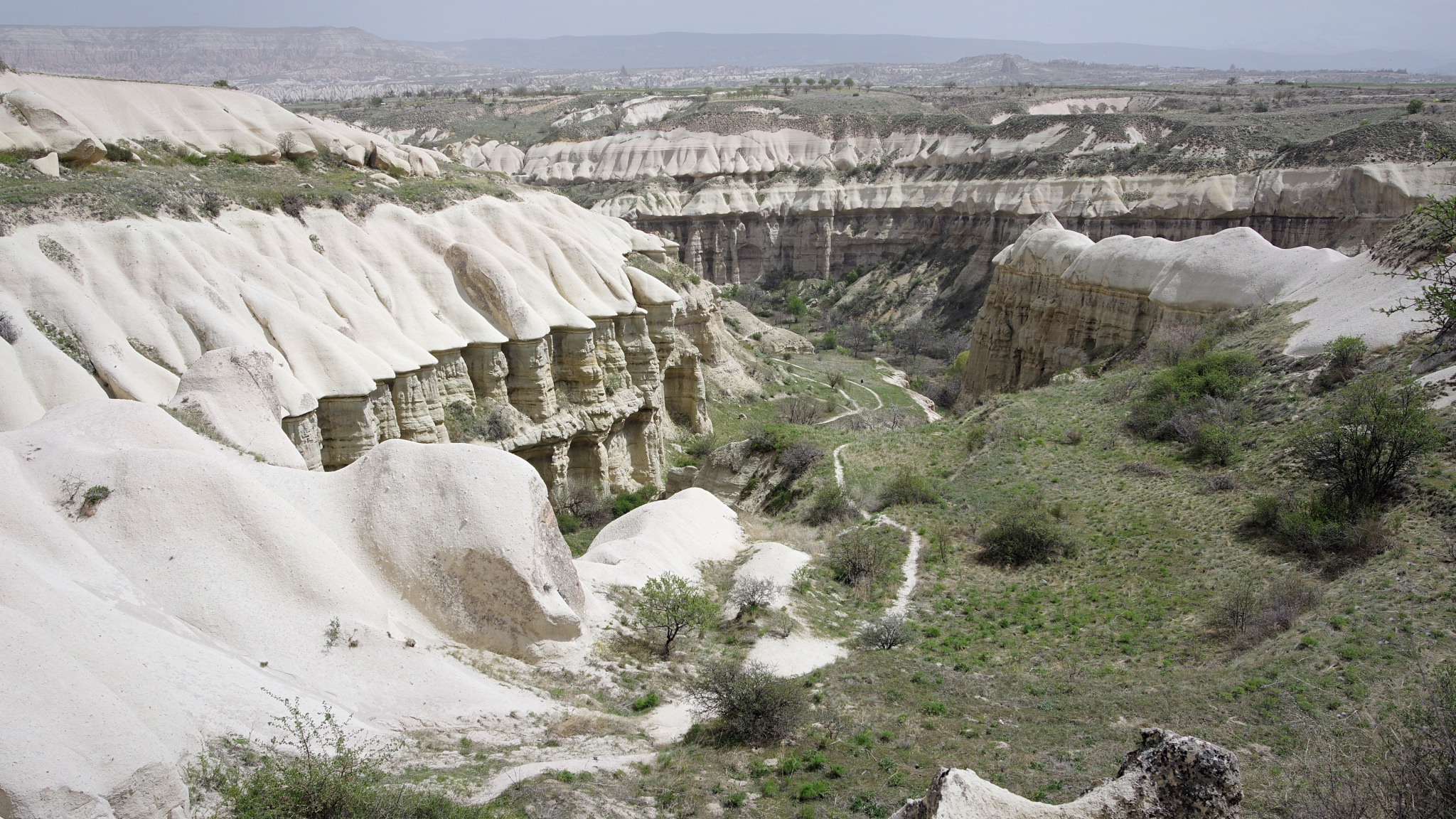Je pensais que la route à suivre vers la Cappadoce serait belle mais elle est assez décevante et ennuyeuse. L’entrée dans Goreme n’est pas plus gaie, ce village a perdu son âme au profit du commerce moderne et des restaurant trop grands. Déçu par le village nous révisons nos intentions, on fait une journée de balade et on se tire ! L’ambiance change dès que nous entrons dans les vallées attenantes car effectivement c’est vraiment très beau !