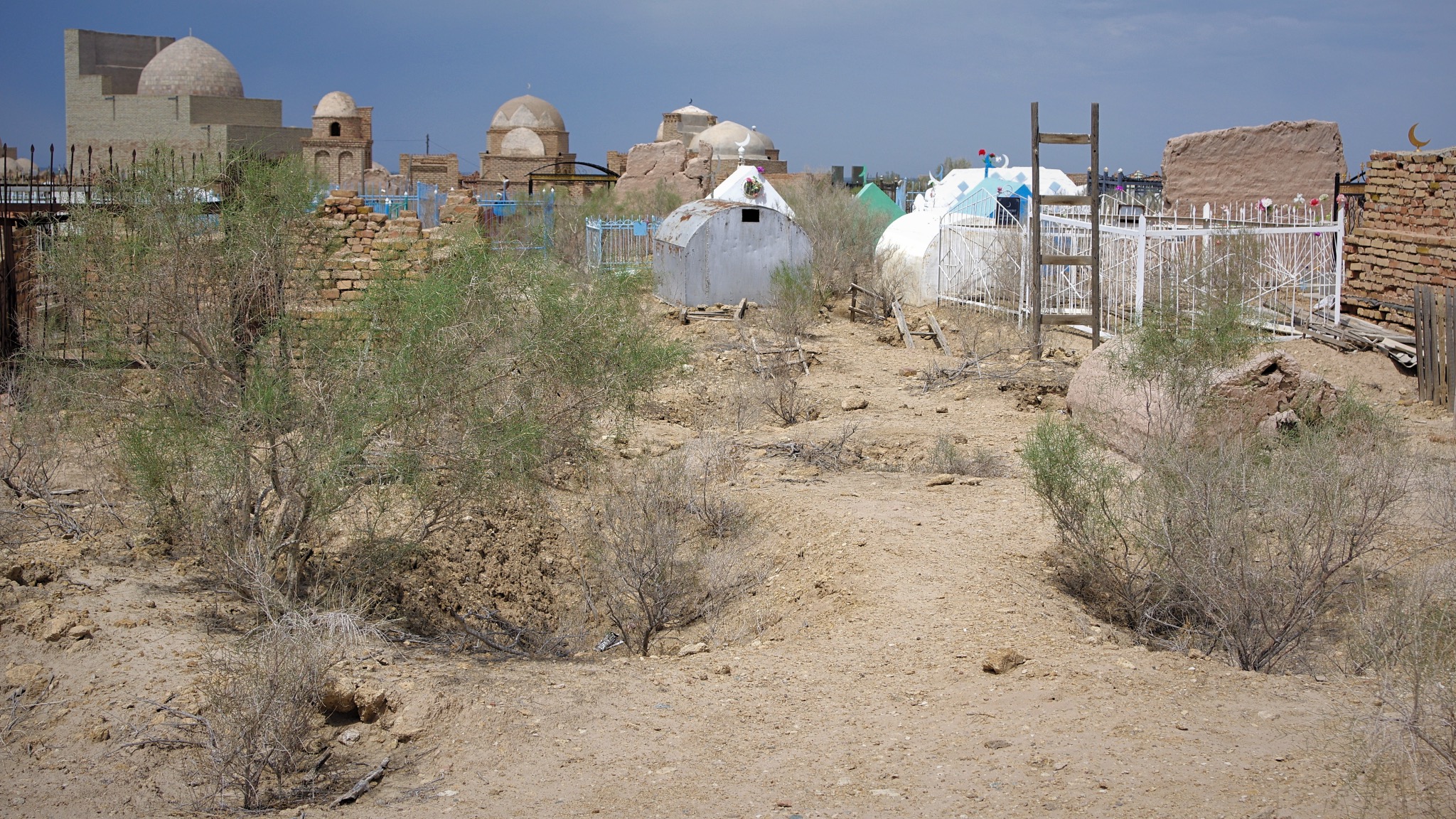 Tout près de Nukus se trouve Mizdakhan, une nécropole dont l’origine remonterait à 2400 ans, ça commence à faire ! Nous y sommes accueillis par le gardien des lieux, un homme à la douceur exemplaire qui tente de nous donner des infos sur le site.