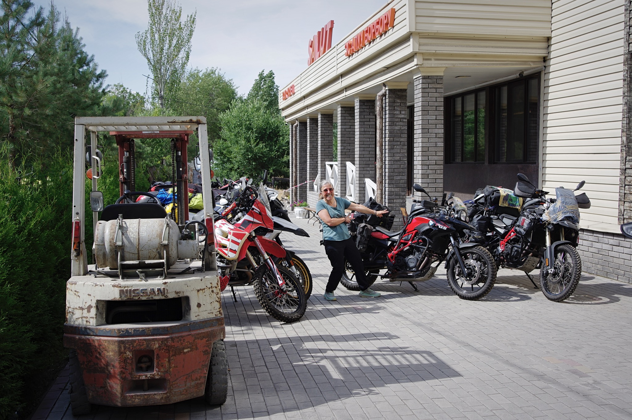 Ah ben non allais-je m’écrier auprès du chef de bord, nous sous arrivés certes mais au point de départ ! L’enchaînement des étapes est idéal, les motos sont déjà là et nous les récupérons ainsi que les permis pour les zones frontières avec un généreux sourire des hôtesses du Salut Hotel.