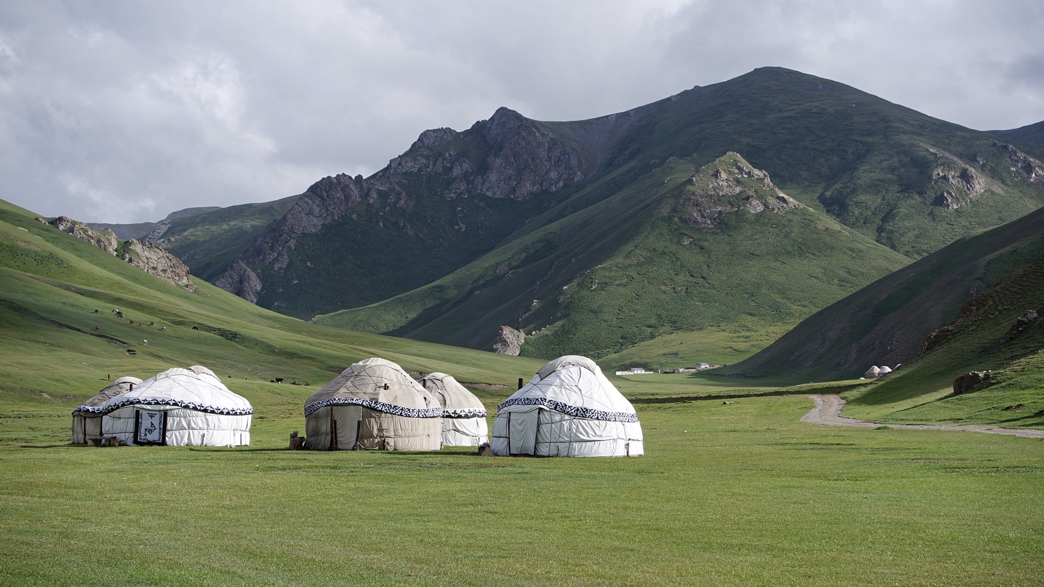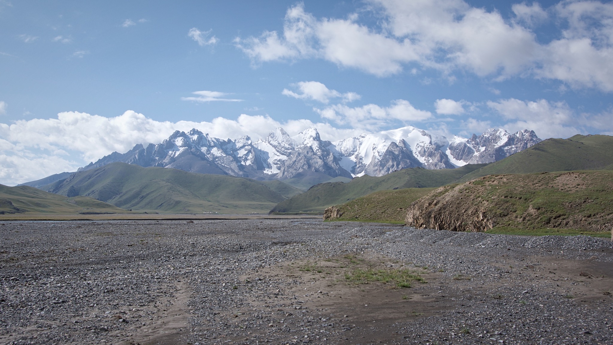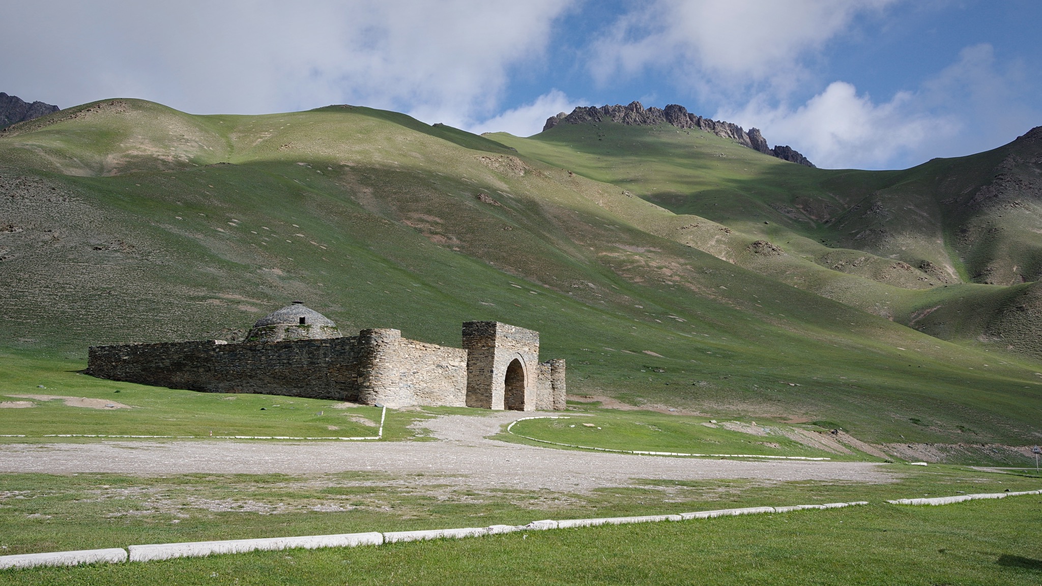Descente à Baetov où je réglerai en 30 minutes un sérieux problème technique – je n’en reviens toujours pas ! – et nous rejoignons Tash Rabat par la toujours aussi belle piste. Jouissance quand tu nous tient ! Nous avons bien nos bonnes habitudes aussi dormons nous dans le même camp de yourtes que l’an passé, l’accueil est toujours aussi gentil et les repas pantagruéliques. Longue balade au col du même nom en croisant de grosses marmottes peu farouches et nous profitons de ce lieux magique chargé d’histoire.
