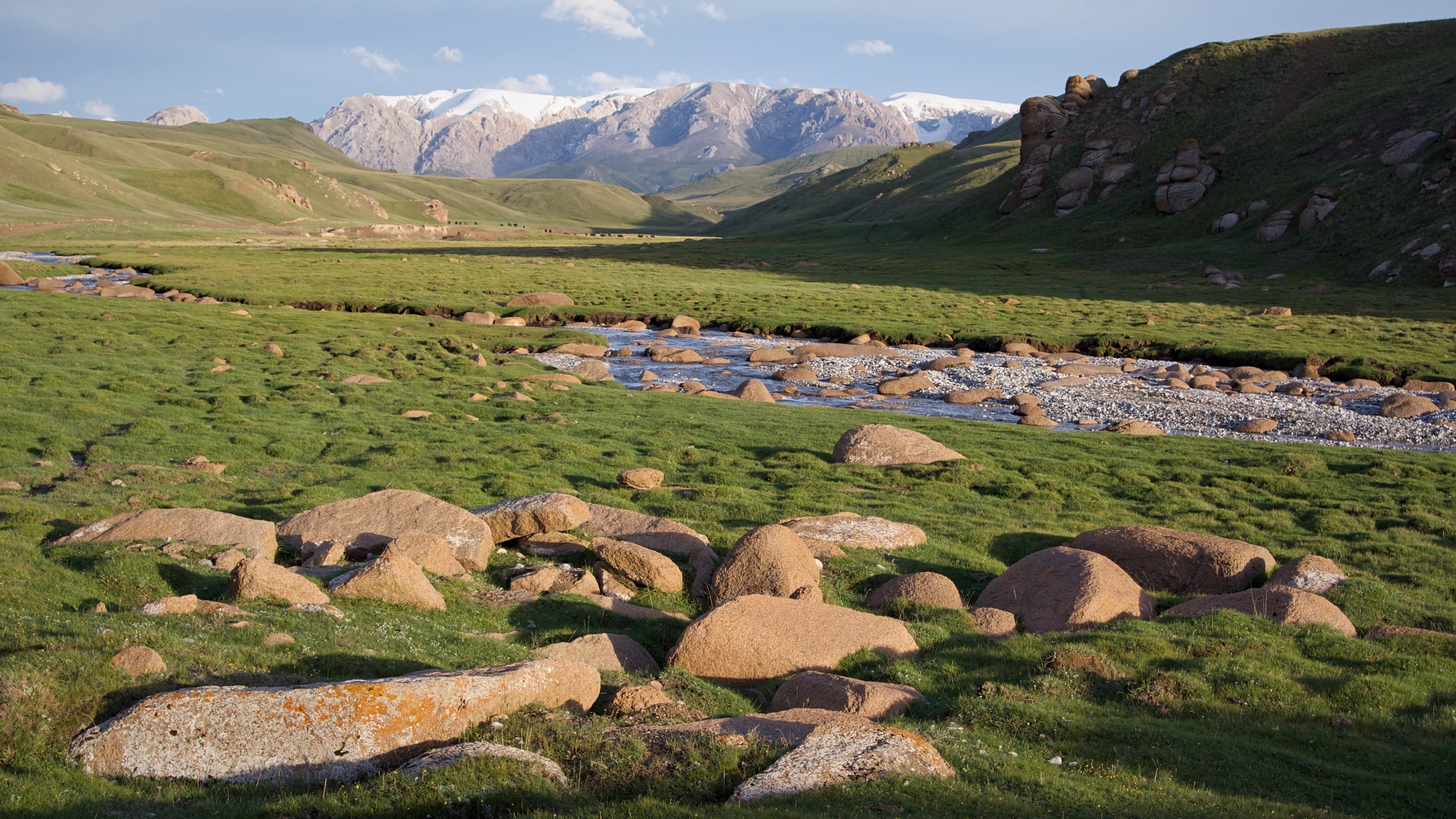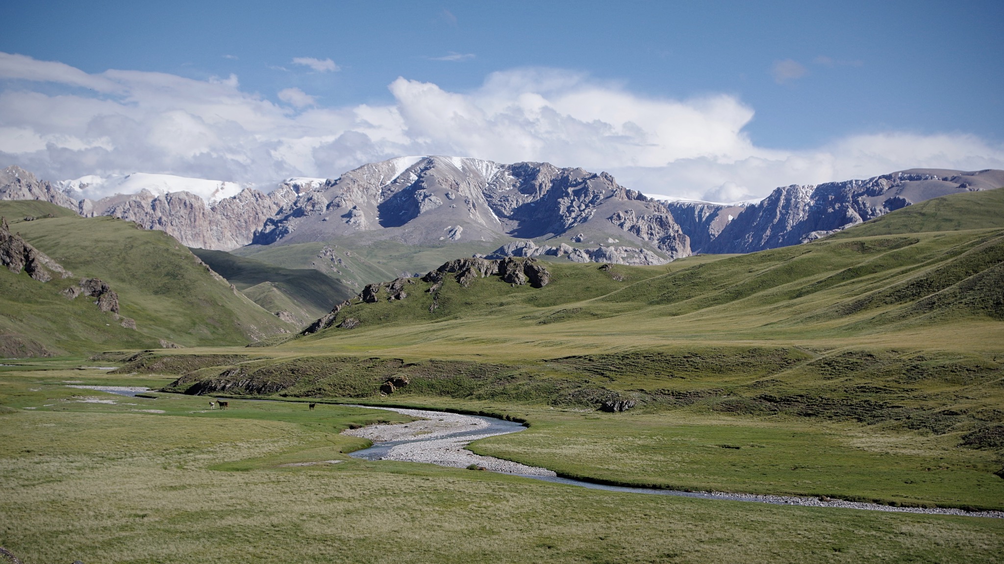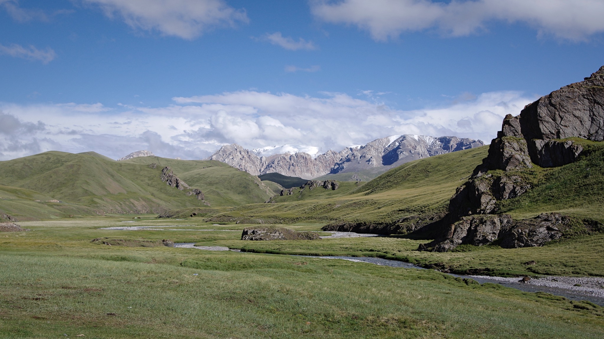 Descente à Baetov où je réglerai en 30 minutes un sérieux problème technique – je n’en reviens toujours pas ! – et nous rejoignons Tash Rabat par la toujours aussi belle piste. Jouissance quand tu nous tient ! Nous avons bien nos bonnes habitudes aussi dormons nous dans le même camp de yourtes que l’an passé, l’accueil est toujours aussi gentil et les repas pantagruéliques. Longue balade au col du même nom en croisant de grosses marmottes peu farouches et nous profitons de ce lieux magique chargé d’histoire.