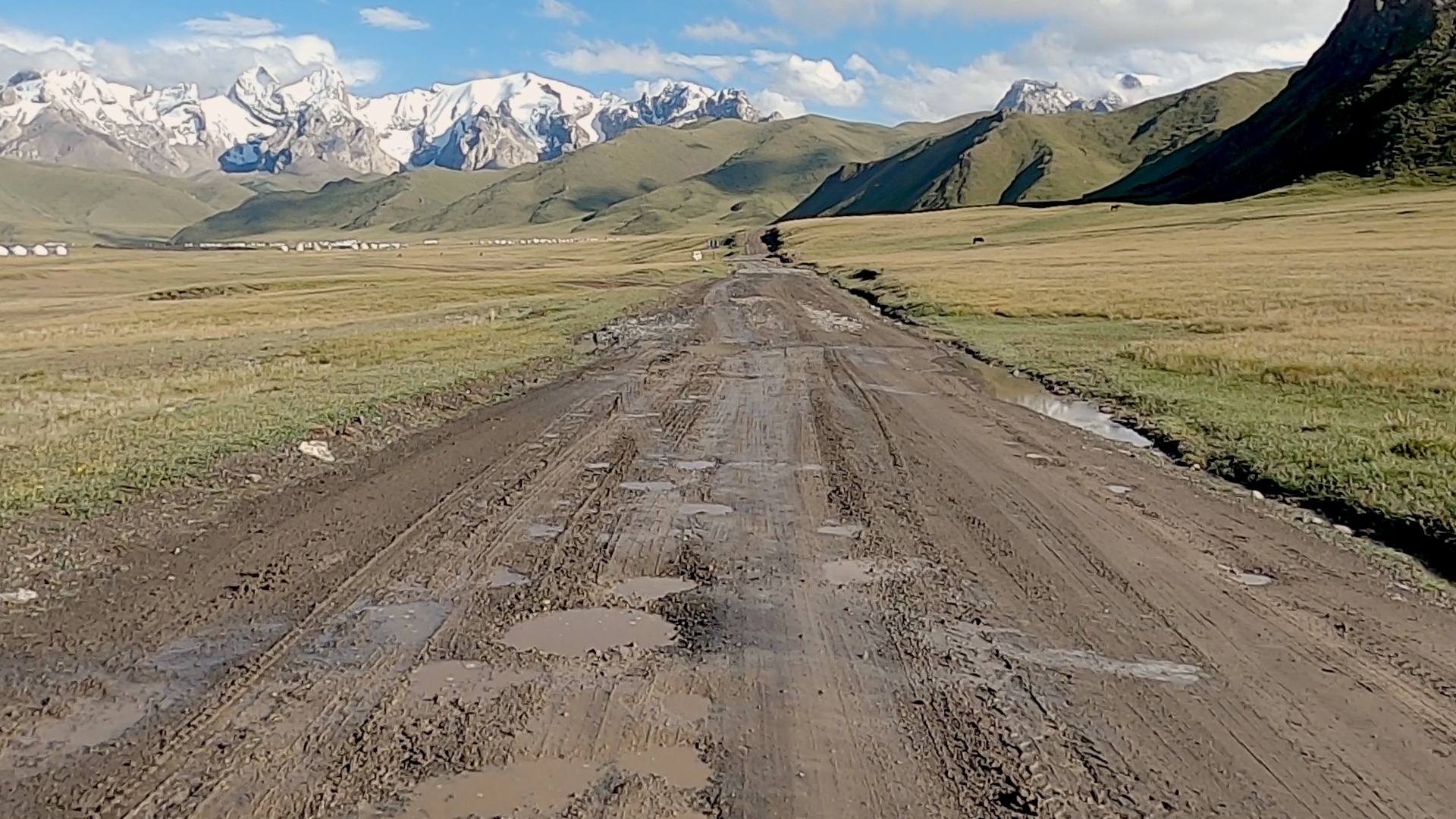 Le vent tourne ? La chance aussi… nous nous voyons refuser l’accès au poste de contrôle vers Torugart, interdiction de prendre la piste pour Kol Suu et ma négociation en charabia n’avance à rien. Un militaire parlant un peu anglais finit par arriver pour m’expliquer qu’ils ont dû secourir des touristes coincés par le niveau d’eau et qu’une fois leur suffit. J’ai beaucoup plus le sentiment que les nouveaux visiteur de Kol Suu, touristes inconscient amateurs de sensations fortes vont se perdre sans compétences dans des zones délicates et appellent les secours au premier bris d’ongle ! Nous serons victimes des petits merdeux tictokeurs. Un orage dantesque nous rattrapera sur le long détour qui nous mène au lac, nous trouvons refuge dans un camp moderne, puis reprenons la piste boueuse sur environ 160 kms vers le lac où nous arrivons éreintés, mais encore subjugués par la beauté du lieu.
