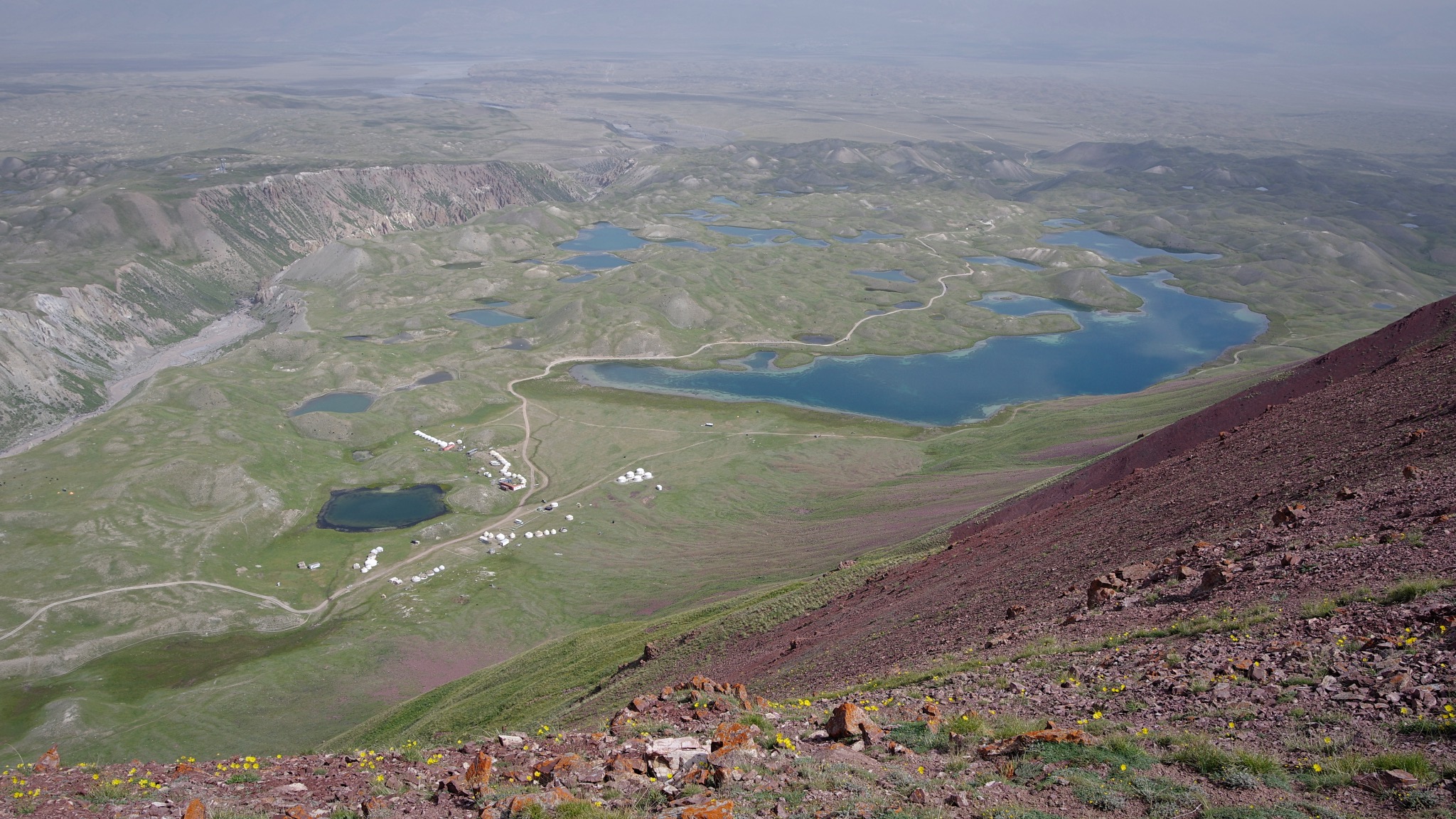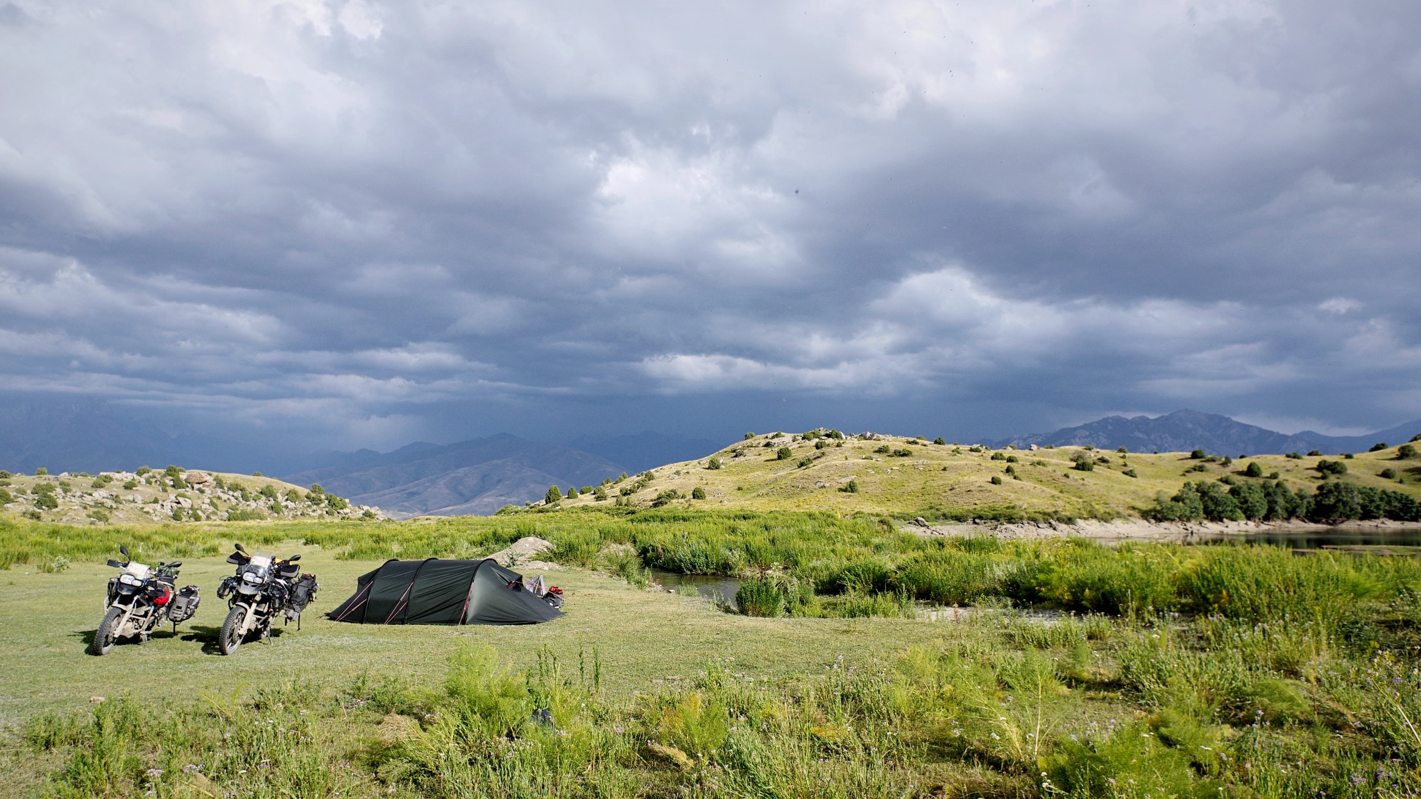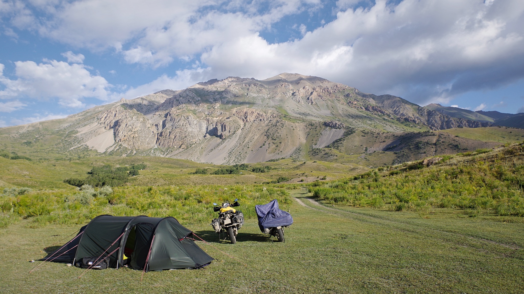 J’avoue qu’il nous tardait de quitter les orages et leurs conséquences, et après un gros contournement du massif sinistré nous avons rejoint le nord ouest du pays. Le lac Say Chelek nous décevra à cause de son environnement (des pentes abruptes et denses de végétation tombent sur le lac offrant peu d’aires de bivouacs et un sol encore très gras) aussi descendons nous à Artik où nous passons un moment agréable dans une Guest House qui me fait penser aux auberges de jeunesse d’il y a 30 ans.