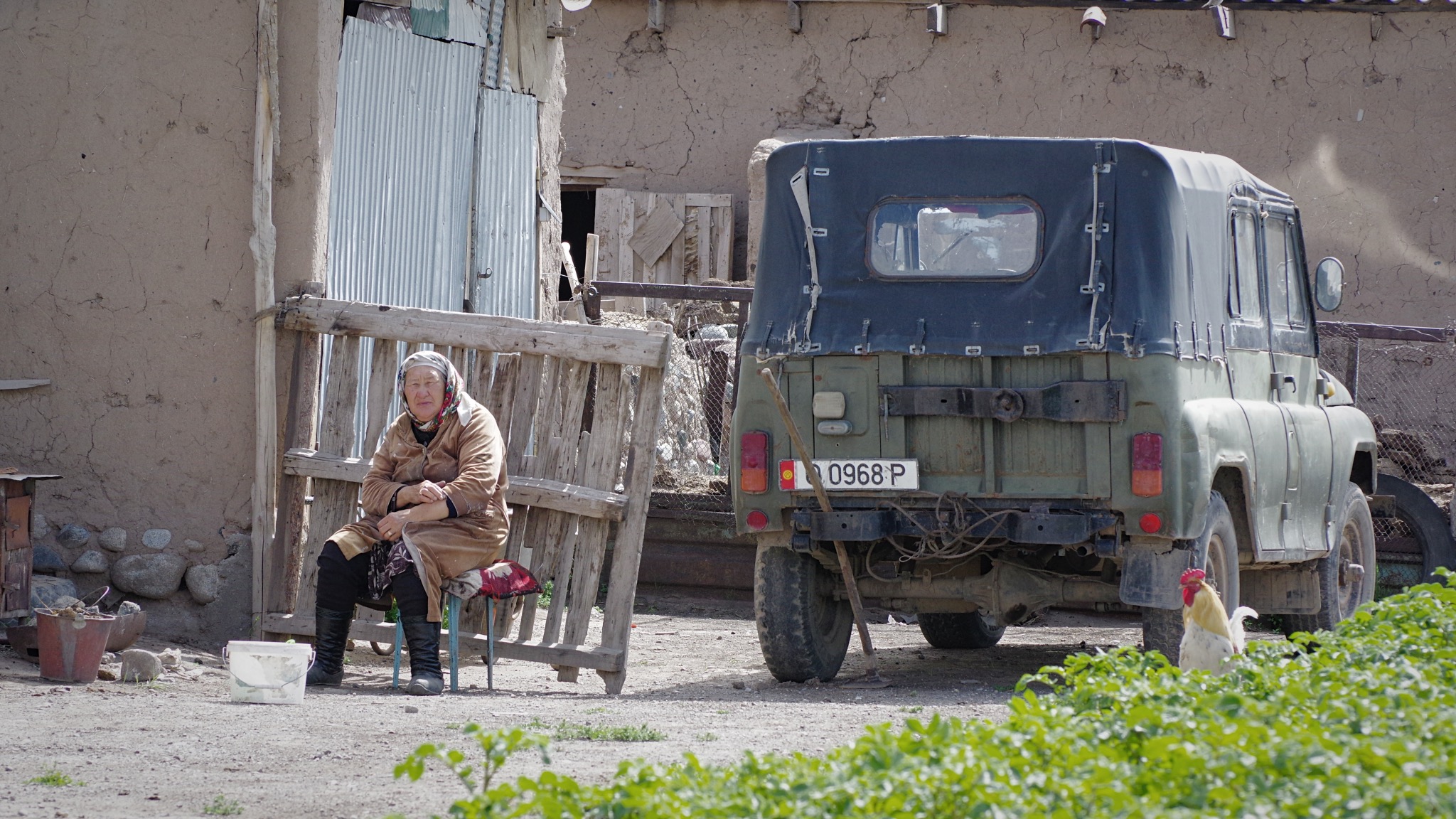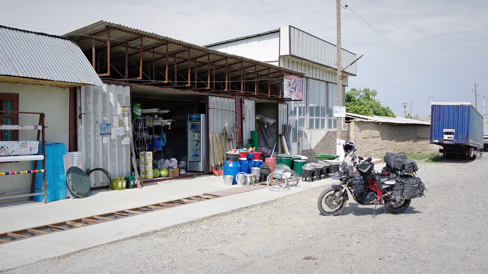 Une pause s’impose pour trouver de quoi réparer nos « gonflants » car après nos deux journées reposantes nous avons deux outres à eau qui fuient et un matelas (le pire c’est que c’est le mien) qui présente quatre petits trous (au moins). Dans un boui boui au bord de la route genre caverne d’Ali Baba des bricoleurs je trouverai de la colle bi-composant, de la cyano-acrylate, du papier de verre et de la toile cirée pour faire rustine le tout à 3,25 euros. Nos champions autoproclamés du bricolage ont des leçons à prendre !Les réparations, charges de batteries se feront à Sary Mogol, à quelques pas de la frontière Tadjique.