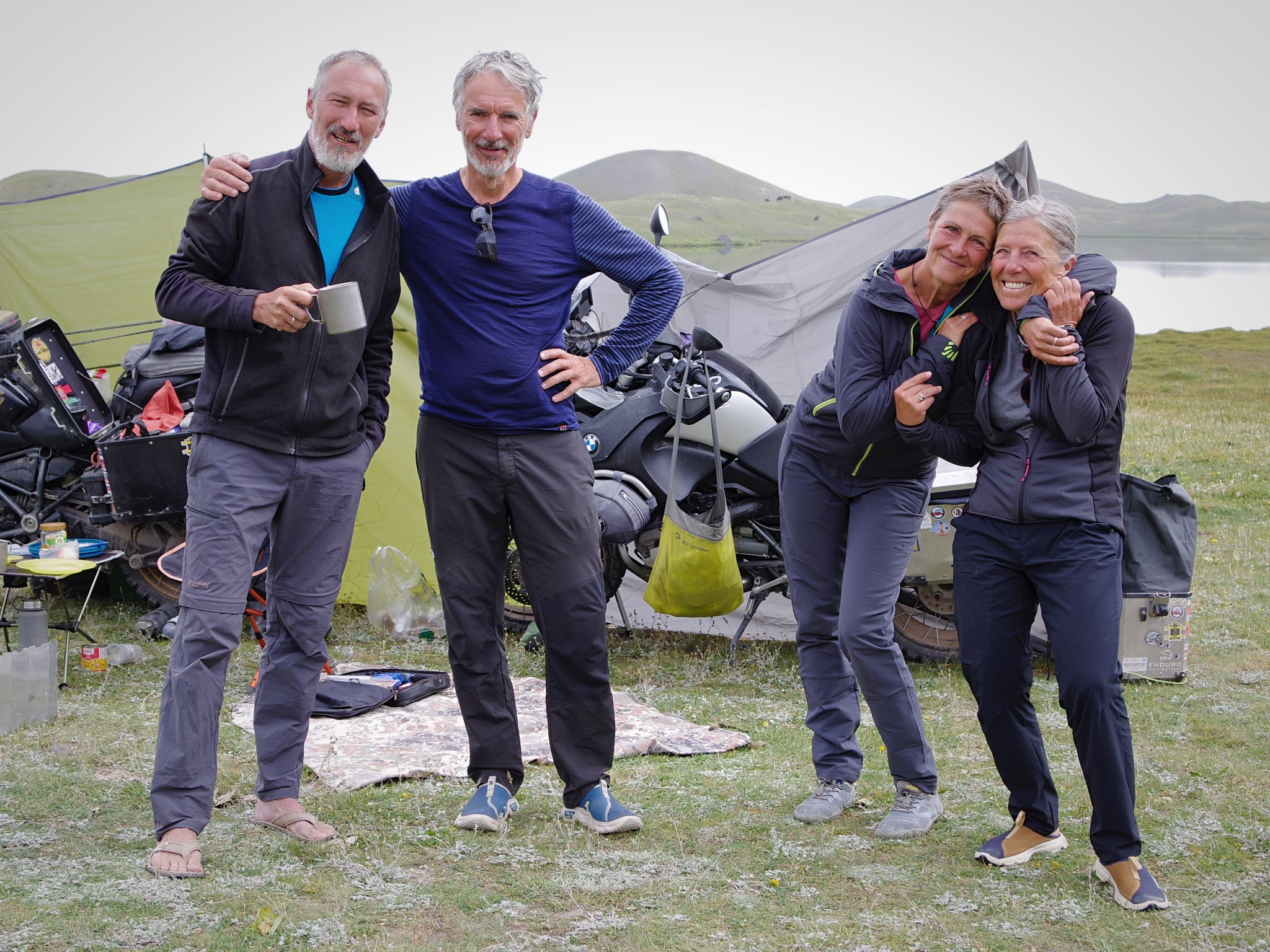 75 kilomètres plus loin nous nous retrouvons à vol d’oiseau à 3 kilomètres du bivouac précédent, (c’est cela de rouler en montagne ! ) et posons un bivouac sous les assauts du vent. Superbe rencontre avec Susi et Jens dont la philosophie du voyage s’accorde à la nôtre, nous passons de très belles heures ensemble et nous séparerons avec un petit pincement au coeur.