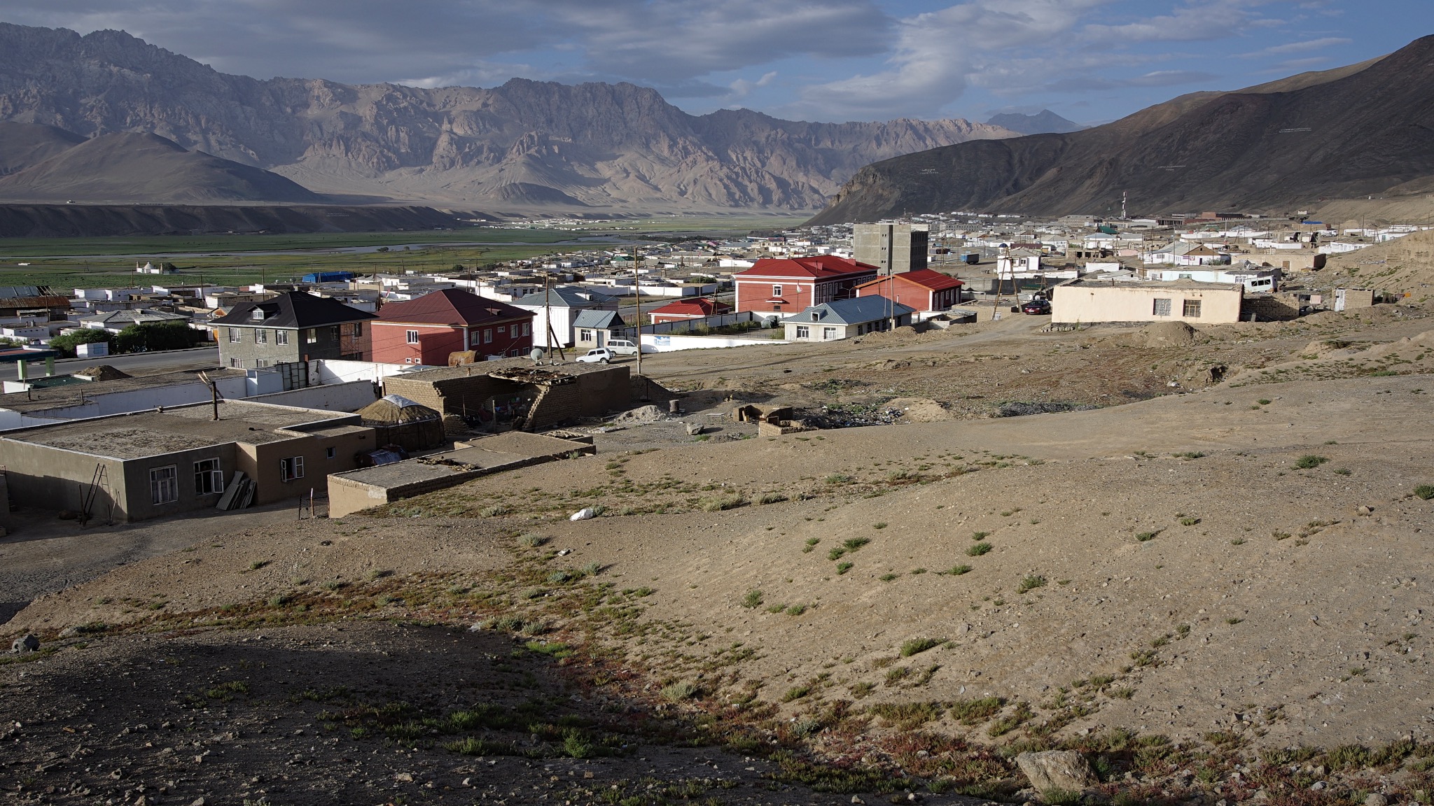 Murghab se présente à nous, elle est la bourgade la plus importante à l’est du Pamir et nous frappe par le nombre de bâtiments officiels sur lesquels sont placardés d’immenses portraits du président. Nous avons une difficulté majeure à trouver le bureau de délivrance des permis pour la réserve naturelle Zorkul – elle n’a d’ailleurs de naturel que le nom car la méchante médiocrité humaine y a exterminé les Marco Polo, mouflons du Pamir – mais à force de persévérance nous voyons un homme en chercher un autre sur un chantier de construction, ce dernier nous fait comprendre qu’il faut le suivre… quelques centaines de mètres plus loin il ouvre un bureau officiel et nous délivre les permis !