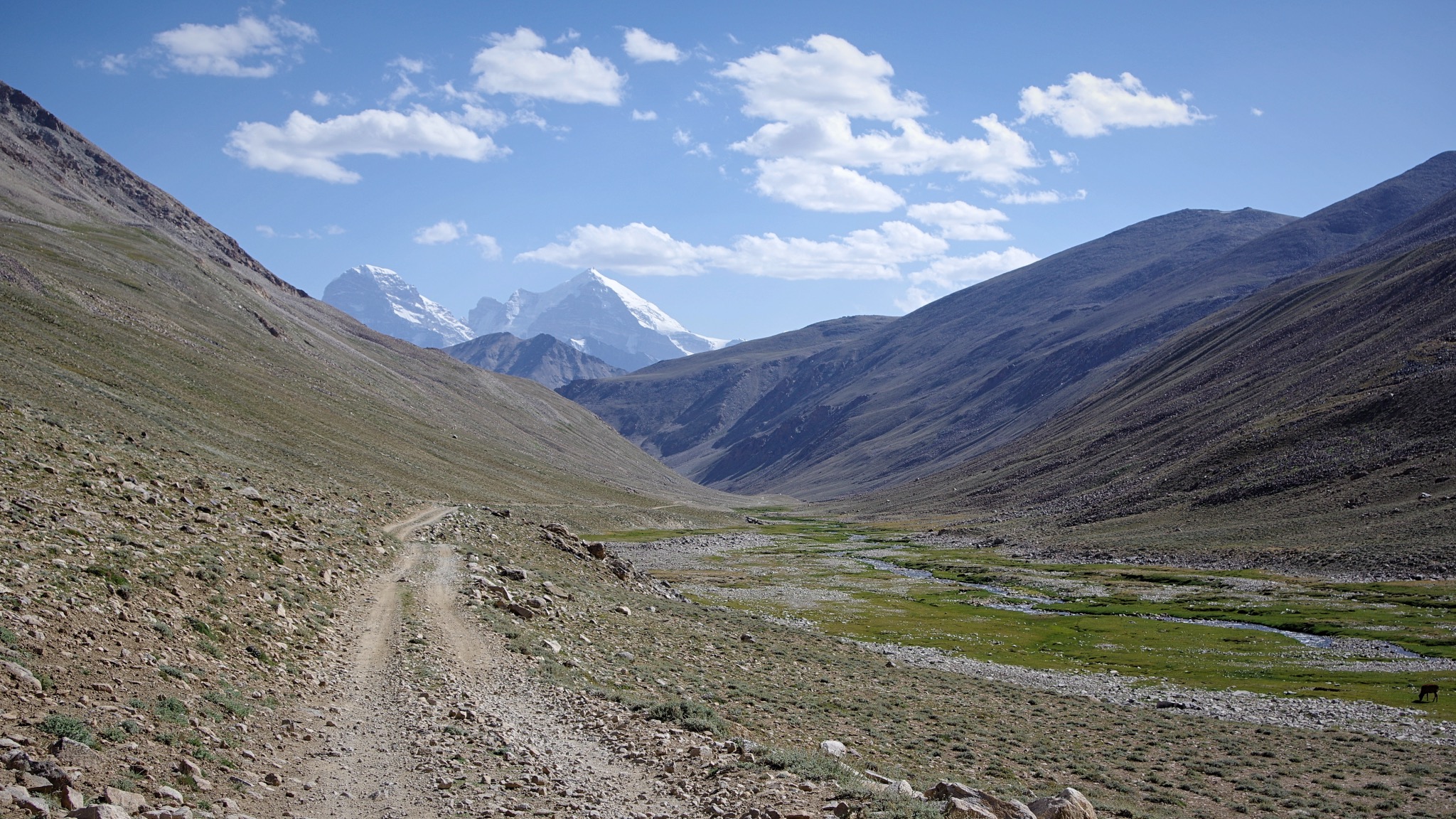 Cette vallée est de toute beauté, la difficulté de la piste rive les yeux vers le bas alors qu’il nous les faudrait pour balayer l’horizon !