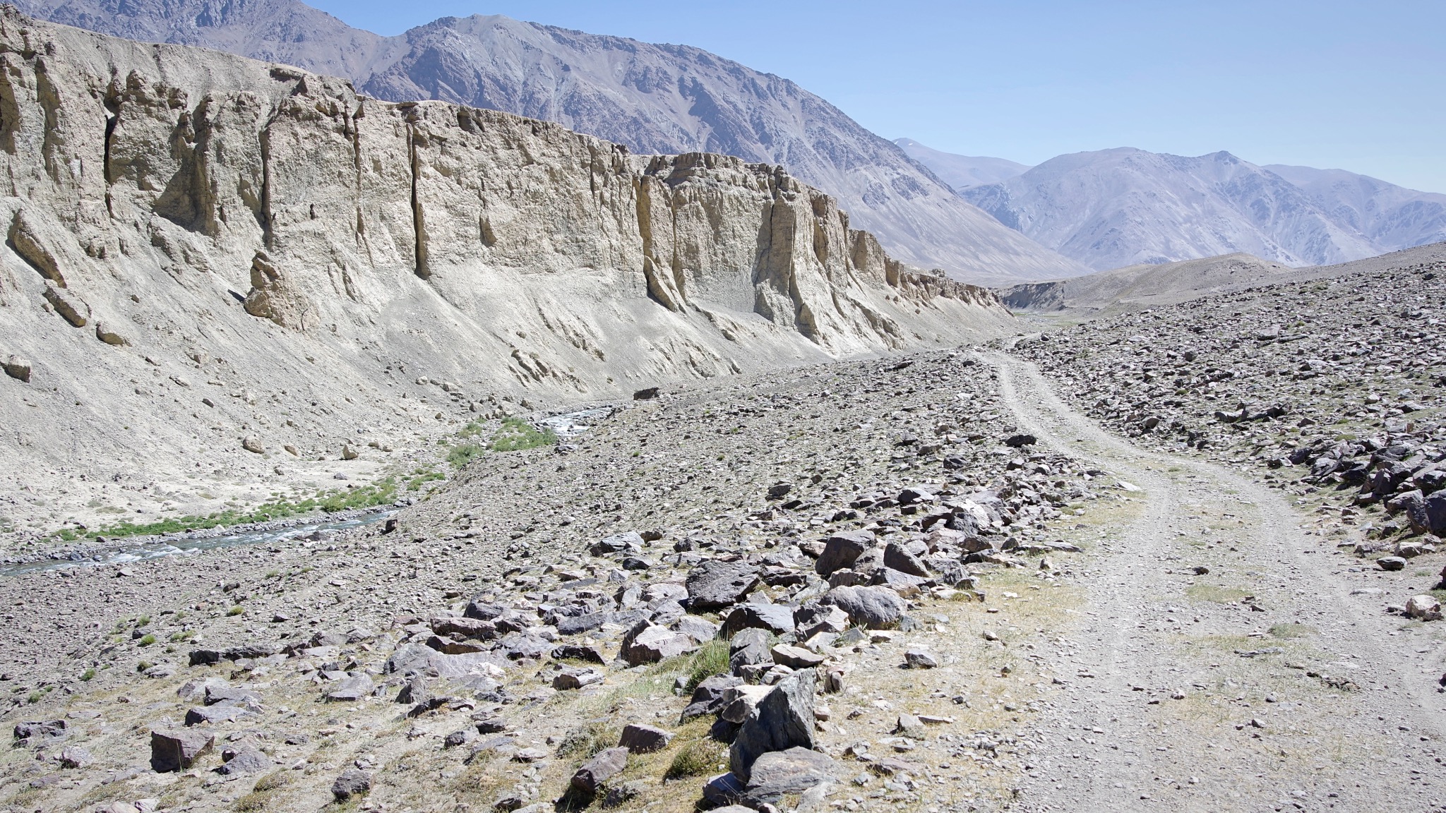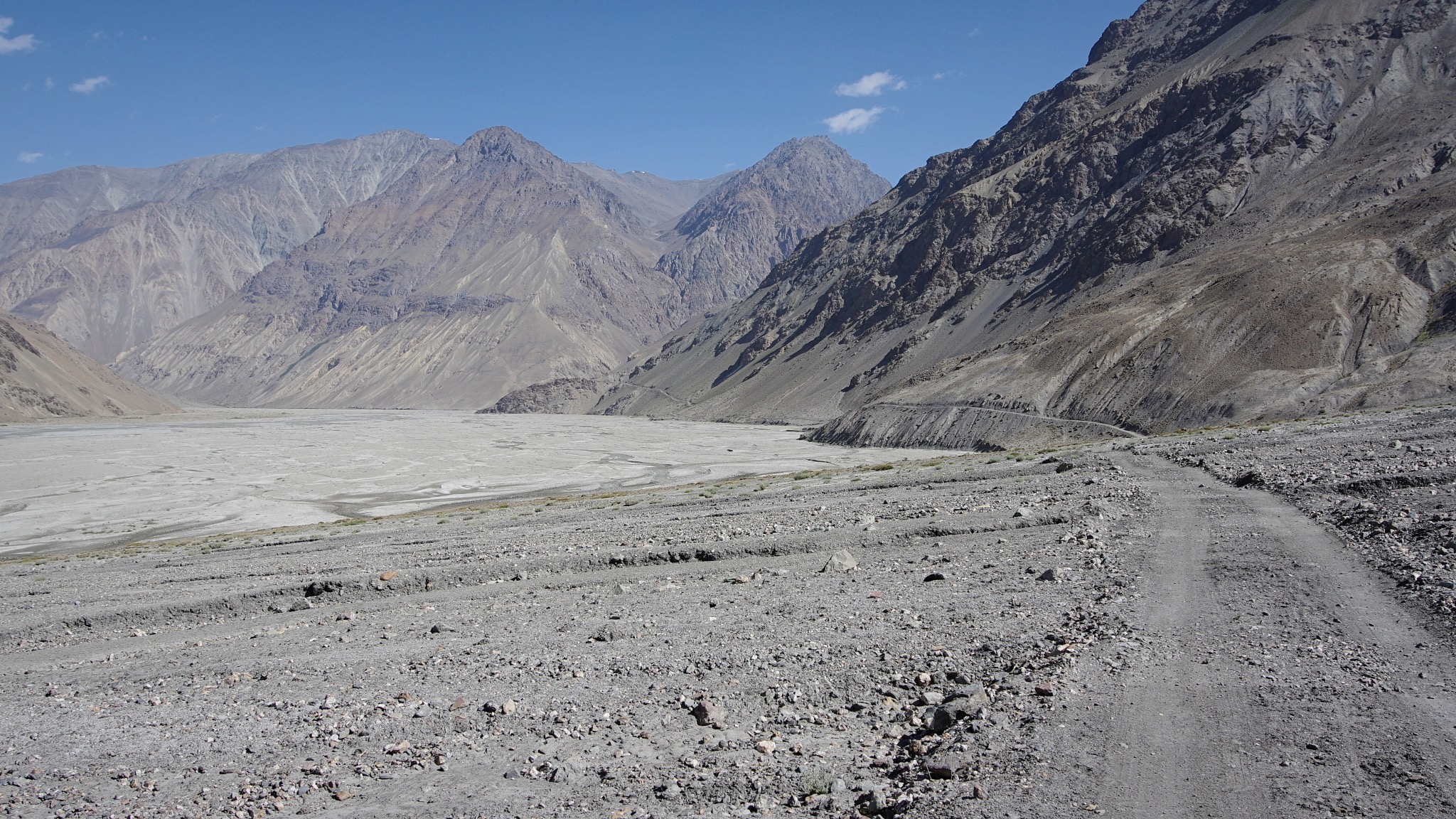 Le second jour nous pousse au delà de la vallée habitée, et dès le hameau de Gudara dépassé nous nous rendons compte que la piste est moins entretenue, devient plus cassante et le sentiment d’isolement progresse.