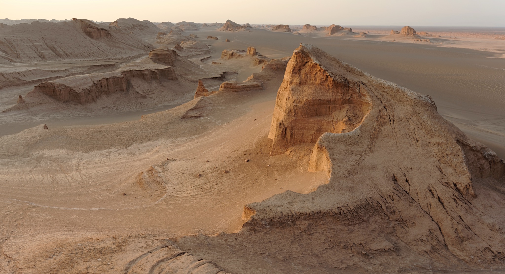 Deux nuits dans un très bel hôtel aménagé dans un ancien caravansérail commencent à nous retaper, d’autant mieux que le petit resto attenant est bon. Visites des points d’intérêts locaux et nous roulons vers une des portes d’entrée du désert de Lut: Shahdad. Aram notre guide nous a déniché un hôtel luxueux où l’accueil est très gentil. Un petit musée dans l’hôtel commenté par Mustapha explique la formation du désert et nous ouvre l’appétit pour aller le découvrir. Mohamad nous y conduit le lendemain pour le coucher de soleil et un bivouac sur place.