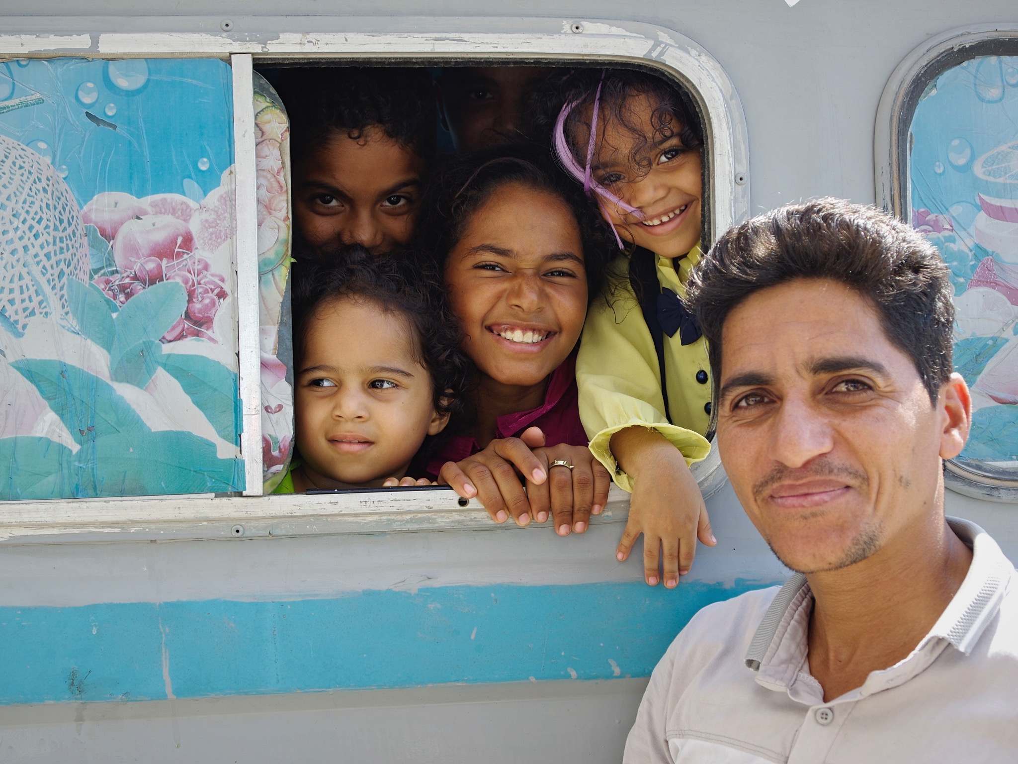 Cap au sud vers les iles de Qeshm et Hormouz qui de mon point de vue ne valent pas les milliers de kms qu’ils faut avaler pour les rejoindre, d’autant moins qu’il fait entre 35 et 40 degrés et que l’humidité frôle la saturation. Au delà des quelques arnaques à touristes je trouverai tout de même de belles opportunités de photos et surtout ce micro van local truffés de jeunes bouilles souriantes qui m’ont carrément fait craquer !