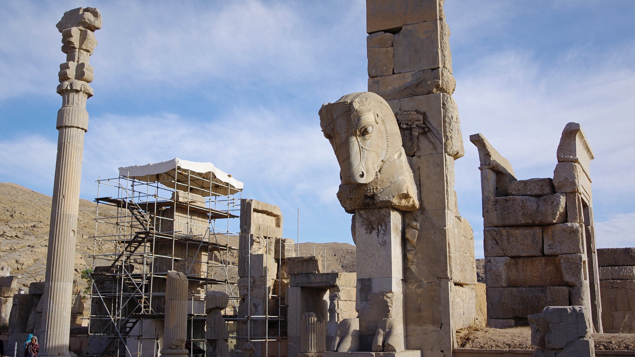 Cap au nord cette fois ci pour Shiraz que nous atteignons sous la pluie puis Persepolis dont le nom est inscrit sur la liste de mes rêves depuis des décennies. L’empire perse était d’une taille impressionnante et à son apogée couvrait grosso modo à l’Ouest la Turquie, l’Égypte jusqu’à l’Inde à l’Est en englobant l’Afghanistan et une partie de l’Asie centrale. Si la tombe de Cyrus est étonnamment modeste ses successeurs ont vu plus grand et leurs palais et tombes ont résisté au temps.