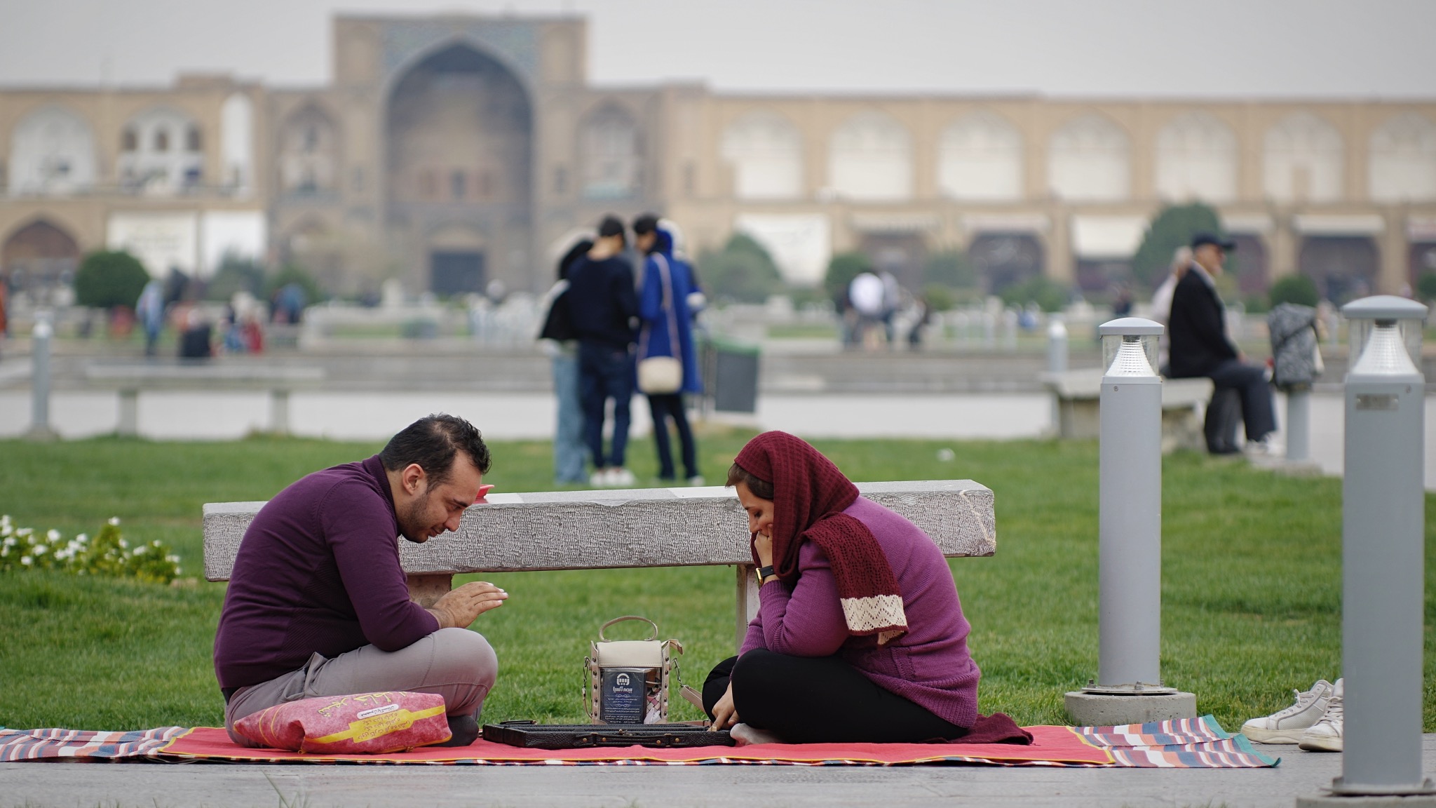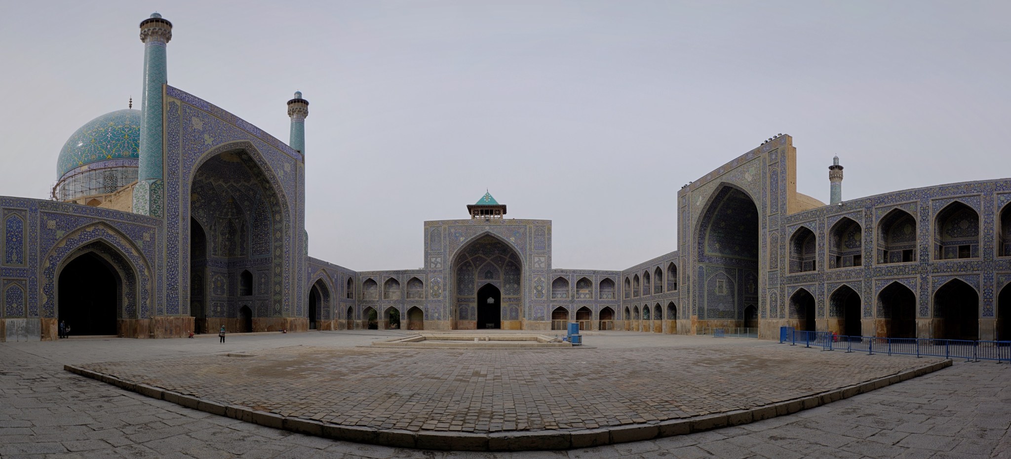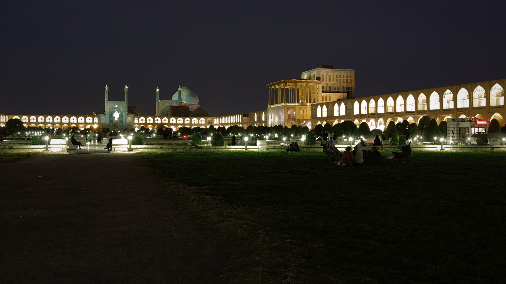 Nous aurons un pincement au coeur lors de notre départ. Les routes à suivre sont entre les villes rectilignes et d’une monotonie sans pareil, celle pour Isfahan n’échappe pas à la règle malgré de rares passages près de modestes sommets. Aram nous a trouvé un charmant hôtel dans une ruelle de la vielle ville, à deux pas de la deuxième plus grande place fermée au monde (après pékin et avant Moscou). Les missiles israéliens on fait fuir les touristes occidentaux et immanquablement nous attirons la curiosité sympathique des iraniens. La mosquée E Nash est particulièrement belle, son dôme a la particularité de générer de nombreux échos, le but était de bien faire entendre la parole du Sheikh. Isfahan est agréable de jour et de nuit, d’autant plus qu’Aram nous fait découvrir les ponts sur la Zaranderud où sur l’un les jeunes se retrouvent, sous l’autre les anciens chantent – je suis même interpellé pour chanter en français et m’y plie volontiers pour un titre que la décence m’oblige à ne pas dévoiler.